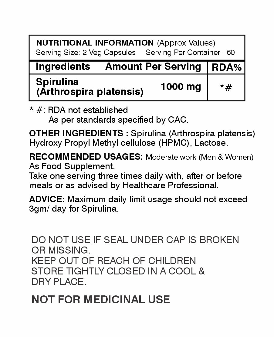 Spirulina powder, HPMC Shell Tablet, INS 551.