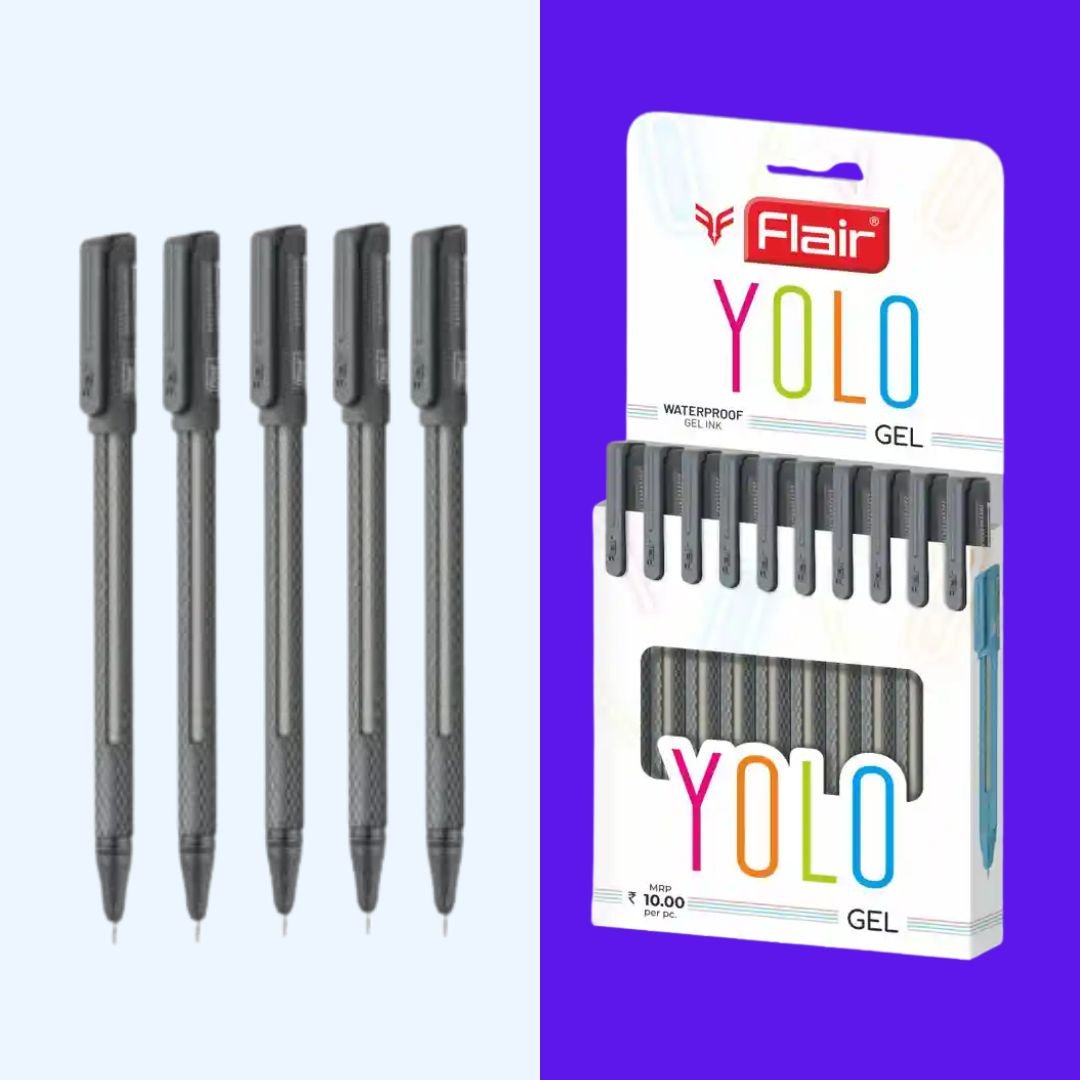 The Flair Yolo Gel Pen offers an unparalleled writing experience, combining comfort, style, and smoothness in every stroke. Designed for professionals, students, and anyone who values the art of handwriting, this gel pen ensures precision and enhanced fluidity, making your notes or creative writing sessions effortless and enjoyable.